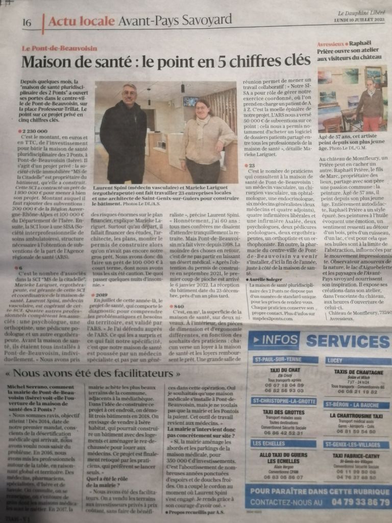 📍 Maison de Santé des 2 Ponts, 15 place du Professeur Trillat, 38480 LE PONT DE BEAUVOISIN