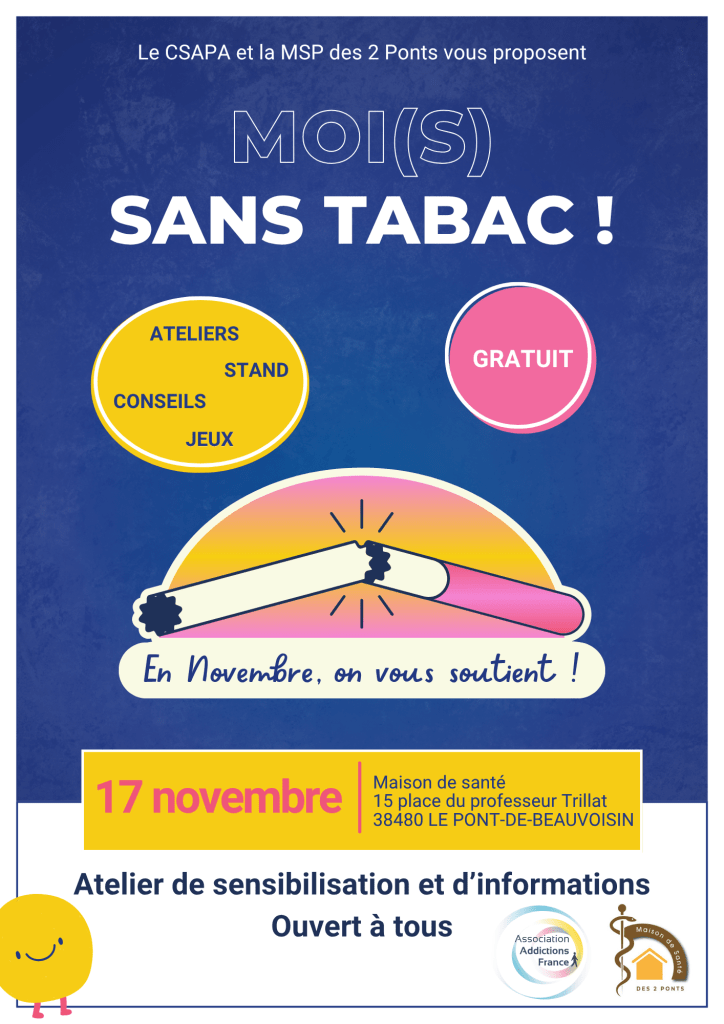 Dans le cadre de la campagne « moi(s) sans tabac », la maison de santé et le CSAPA vous accueille pour une journée d’information et d’échanges.